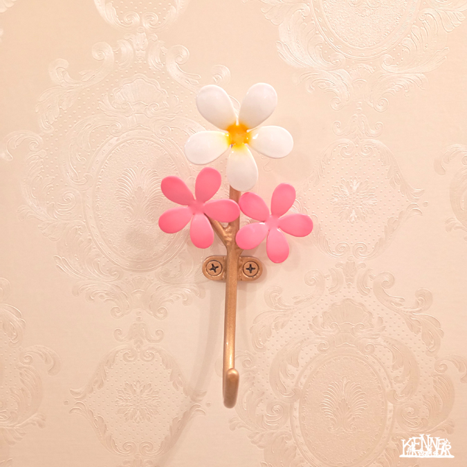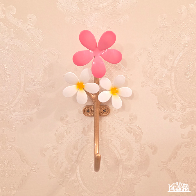 可憐に咲いた三輪のお花のフック&可憐なお花がたくさん咲いた三連フック。