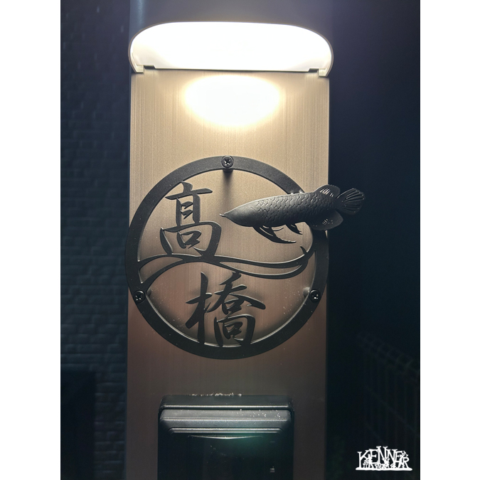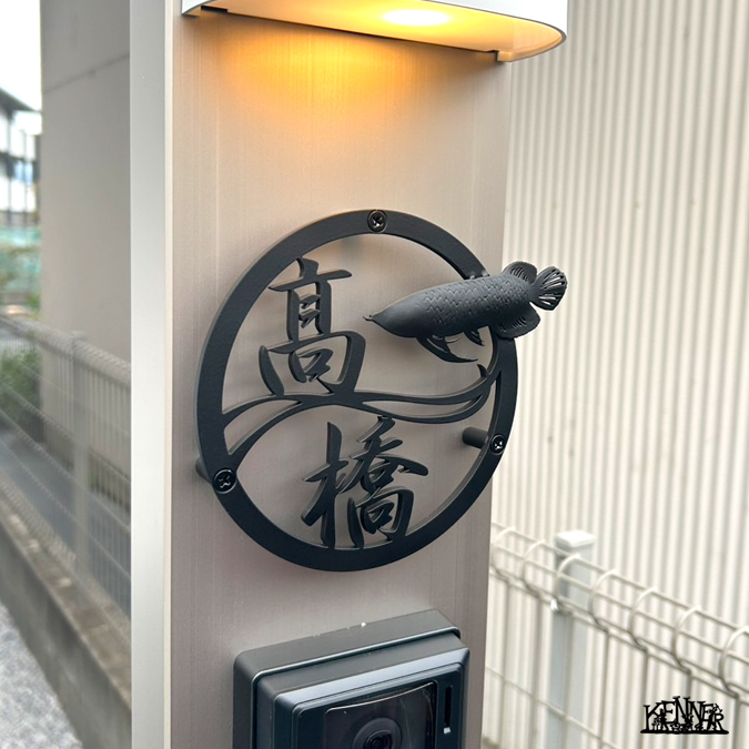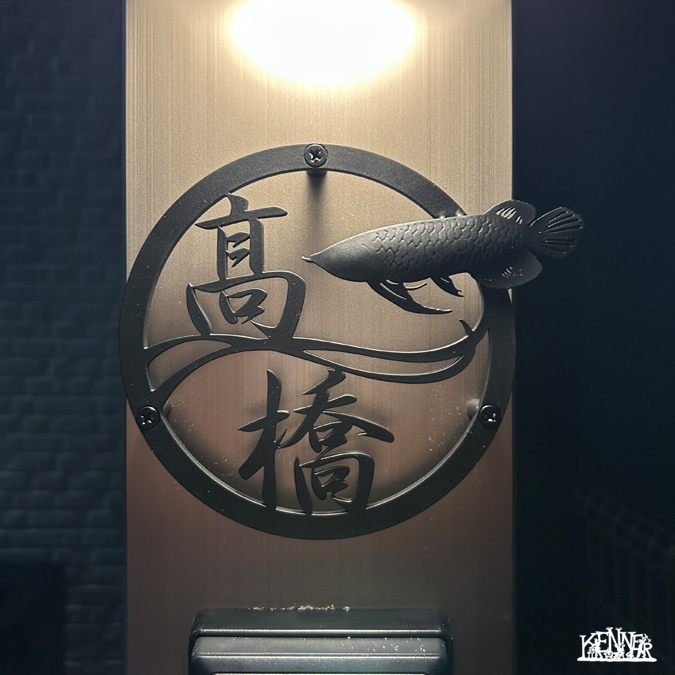 優雅に泳ぐアロワナ×波をモチーフにした漢字表札。