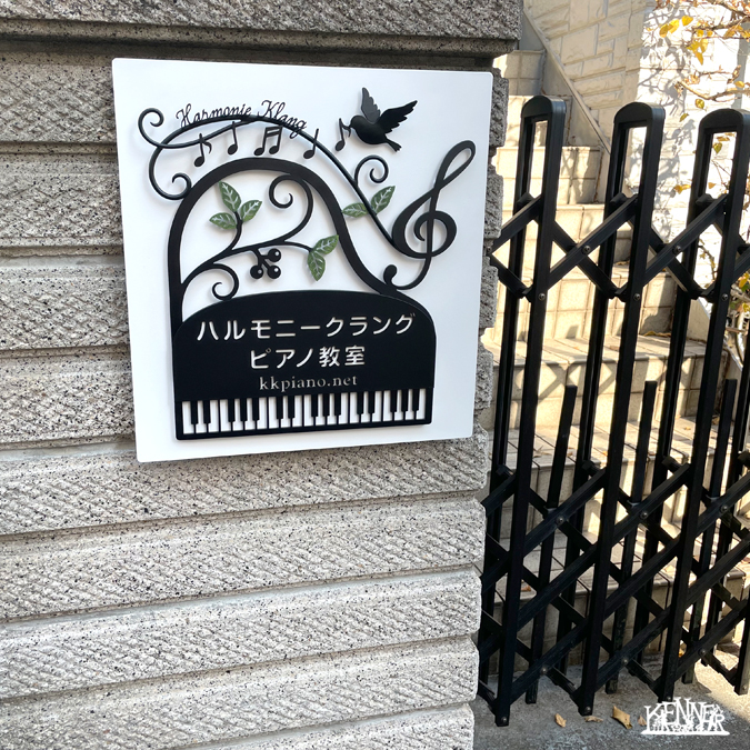 東京都にありますピアノ教室「ハルモニークラングピアノ教室」様に設置されました壁面看板。